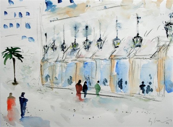 Die Straße führt weiter am Megaro Kapodistrias vorbei, dem Geburtshaus des ersten Ministerpräsidenten von Griechenland. Heute beherbergt das Gebäude den Fachbereich Fremdsprachen, Übersetzen und Dolmetschen der Ionischen Universität, an dem ich tätig bin. Daneben liegt das schöne Gebäude der Lesegesellschaft mit einer herrlichen alten Bibliothek, die auch deutschsprachige Bücher enthält. Von ihren Lesetischen aus hat man einen herrlichen Blick über das Meer. Weiter durch das kolossale Seitentor des ehemaligen englischen Gouverneurspalastes, der heute interessante Sammlungen asiatischer Kunst beherbergt. Diesen Palast ließen die Engländer von Maltesern mit Bausteinen aus Malta erbauen. Noch heute bilden die Malteser den Kern der katholischen Bevölkerung der Stadt. Die Pferdedroschken werden bis heute zumeist von Maltesern betrieben. Von seiner Terrasse eröffnet sich ein einmaliger Blick auf die imposante Esplanade. Rechter Hand unter den Arkaden liegen die Cafés. Diese eindrucksvollen Gebäude mit den Arkaden sind ein Vorläufer der Pariser Rue de Rivoli, die der Vater des Suezkanal-Erbauers Ferdinand von Lesseps während der kurzen französischen Herrschaft (1807 – 14) errichten ließ. Zu jener Zeit wurde auch mit der Bepflanzung des unteren und oberen Teils der Esplanade begonnen. Der Teil der Esplanade mit den Cafés unter den Arkaden heißt Liston; sein Name geht wahrscheinlich auf die Liste zurück, die die Namen der Honoratioren der Stadt verzeichnete. Früher war nämlich der Aufenthalt auf dem Liston nur diesem privilegierten Personenkreis vorbehalten, die einfachen Leute mussten den Liston auf der Hintergasse passieren.Böse Zungen hingegen bringen den Namen mit dem griechischen Wort »liston« (zu Deutsch »der Platz der Räuber«) in Verbindung, denn die Preise auf diesem teuren Pflaster sind recht gesalzen. Immerhin kostet ein Kaffee mehr als drei Euro. Das ist natürlich nur ein schlechter Scherz. Der Gerechtigkeit halber muss angemerkt werden, dass die meisten Gäste stundenlang bei einem Kaffee oder einem anderen Getränk ausharren. Einen über den Durst trinken, sollte man hier allerdings nicht, denn das könnte teuer zu stehen kommen.